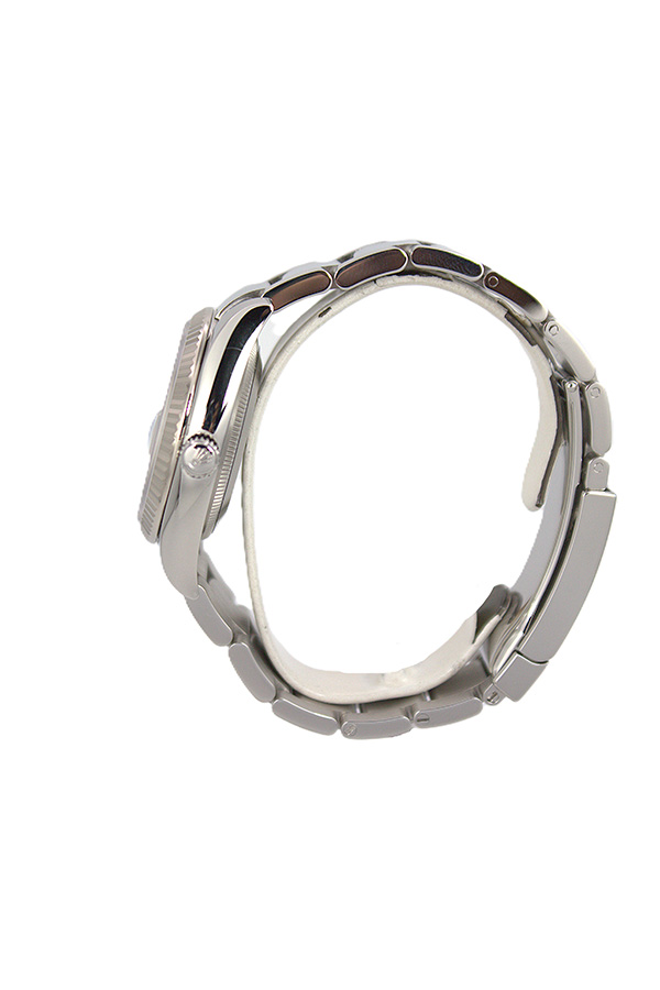 34mm, Silver Baton Dial, White Gold Fluted Bezel, Stainless Steel Oyster Bracelet, Sapphire Crystal, approximately 48 Hours of Power Reserve, 3135 Caliber Movement, Water Resistance 10ATM.