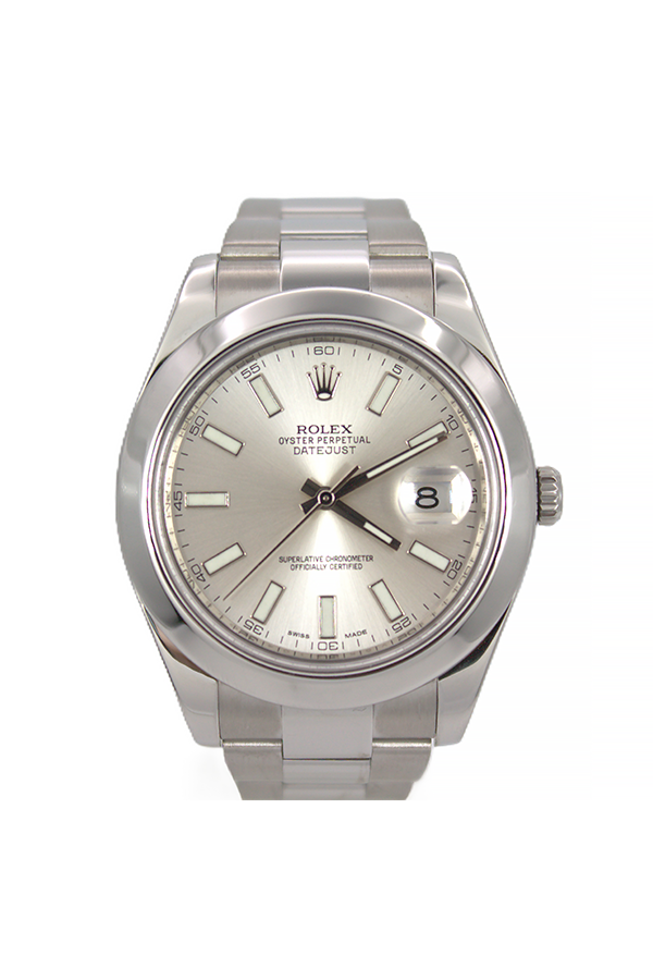 41mm, Silver Baton Dial, Steel Smooth Bezel, Stainless Steel Oyster Bracelet, Sapphire Crystal, approximately 48 Hours of Power Reserve, 3135 Caliber Movement, Water Resistance 10ATM.