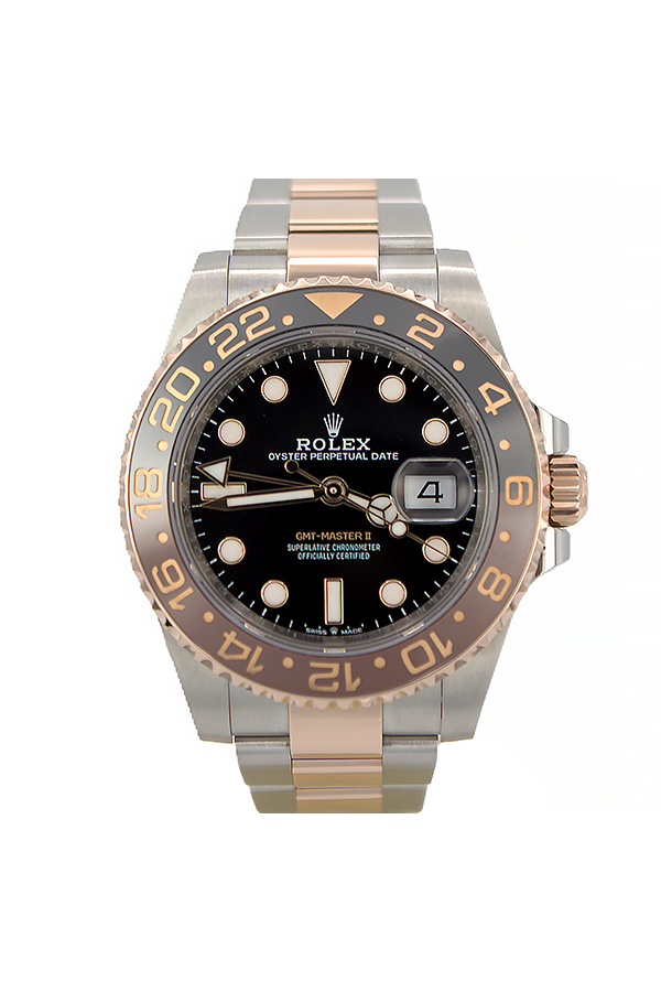 40mm, Black Luminous Dial, Black | Brown Ceramic Bezel Insert, Two-Tone Stainless Steel & Rose Gold Oyster Bracelet. Extended