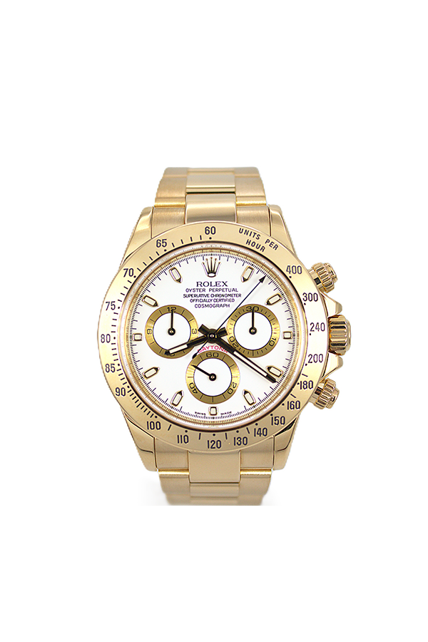 40mm, White Dial, 3 Sub Dials, Yellow Gold Engraved Bezel, 18 Karat Yellow Gold Oyster Bracelet, Sapphire Crystal, approximately 72 Hours of Power Reserve, 4130 Caliber Movement, Water Resistance 10ATM.